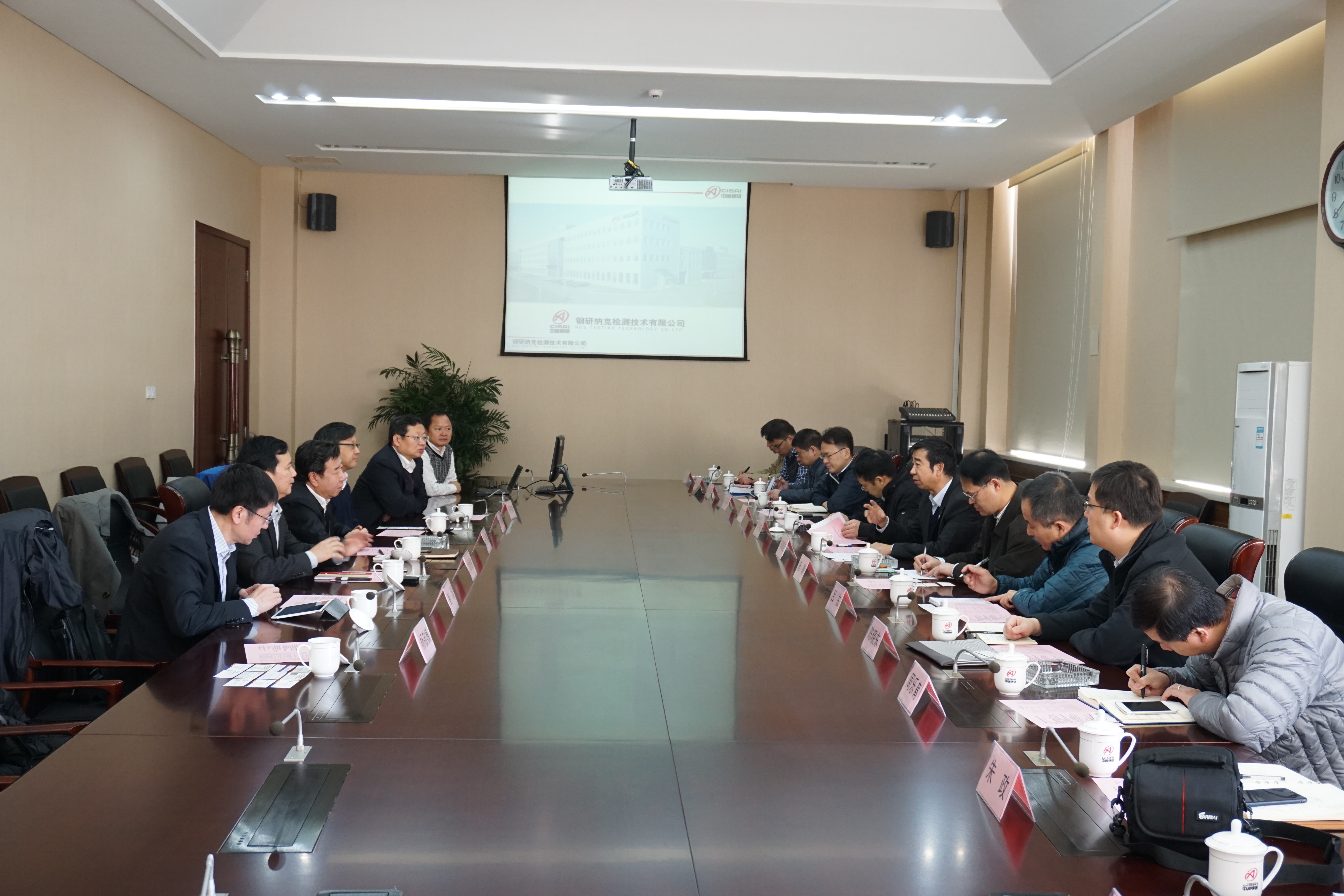 中國鋼研集團科技部杜挽生主任、鋼研納克檢測公司賈云海總經理、鮑磊黨委書記,機械總院行業發展部劉中星副部長、機械總院沈鑄所唐驥副所長、機械總院北自所孟祥宇副所長、機械總院中機生產力中心肖承翔副主任、機械總院中汽認證中心陳曉東主任助理及相關人員參加了本次對接交流。