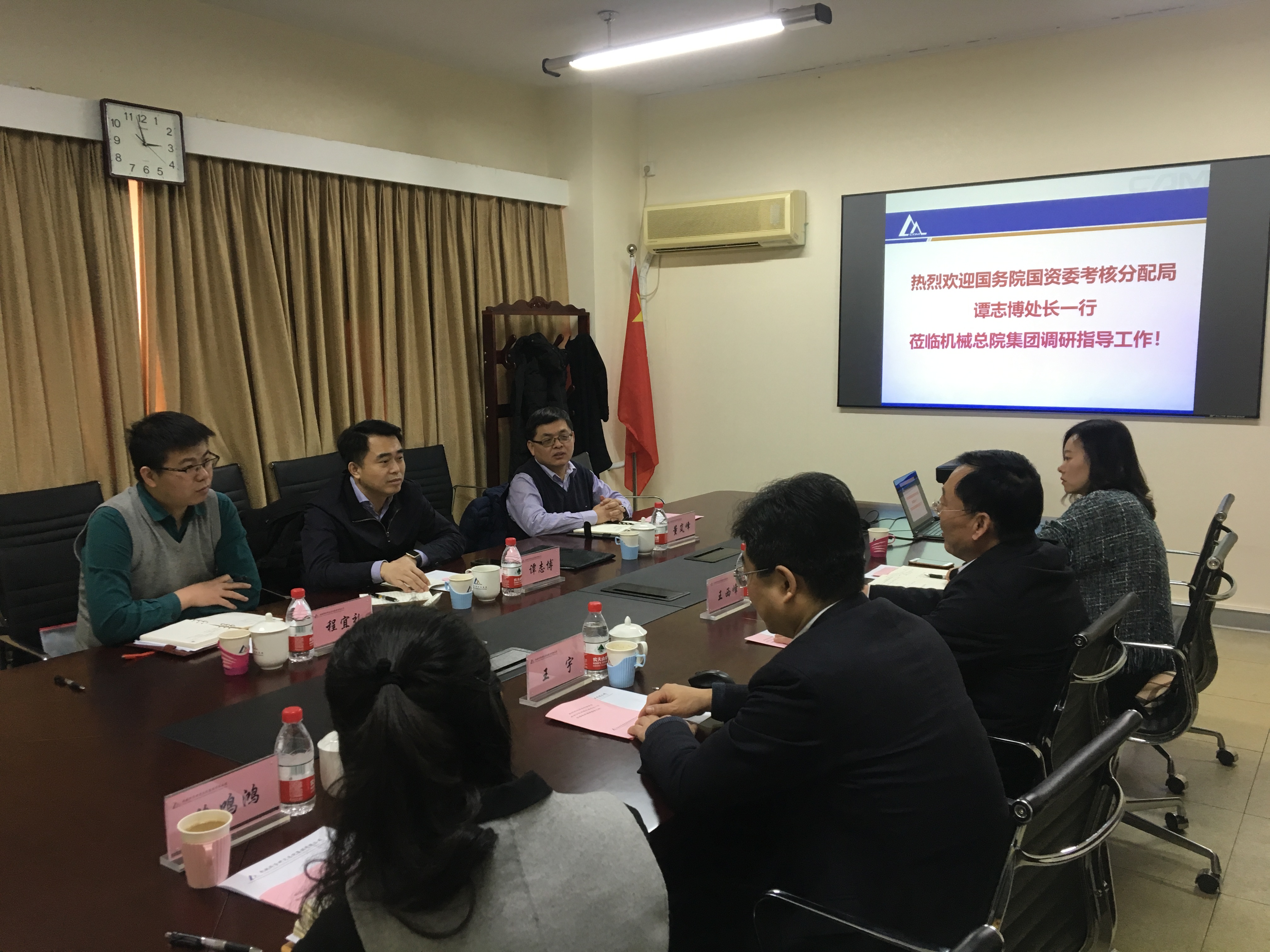 2018年12月13日下午,國(guó)資委考核分配局譚志博處長(zhǎng)一行到機(jī)械總院集團(tuán)調(diào)研。集團(tuán)黨委副書記、董事、副總經(jīng)理王西峰熱情接待了譚志博處長(zhǎng)一行。